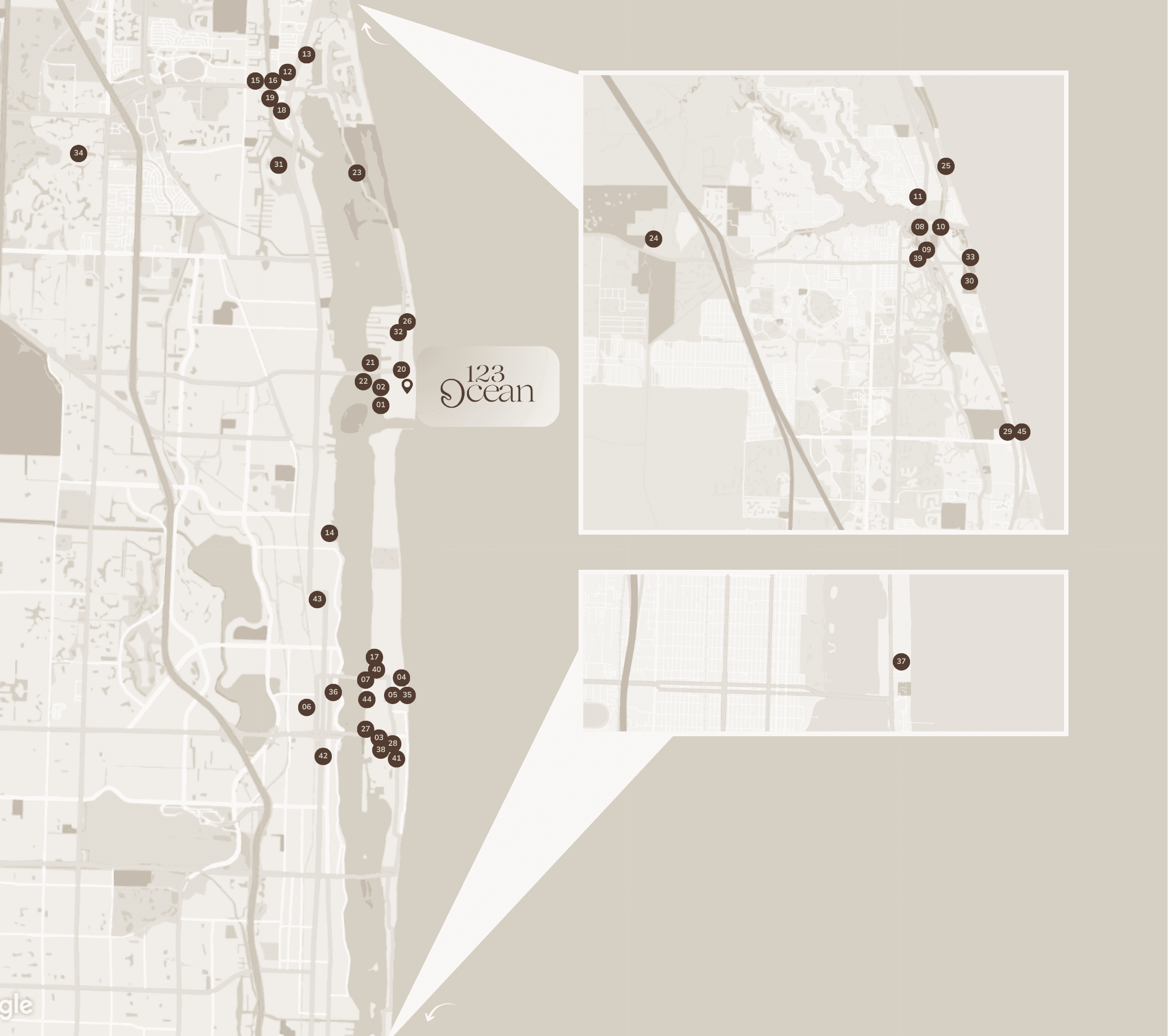 Just 19 minutes from 123 Ocean you access history architecture collecting art and Palm Beach heritage storytelling inside an ocean adjacent landmark that builds social depth around luxury coastal life.